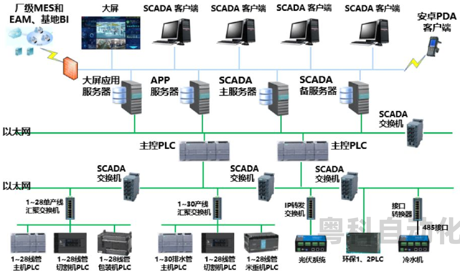 ·监控服务器、HMI工作站、数据库系统,完成数据处理、可视化及控制逻辑。